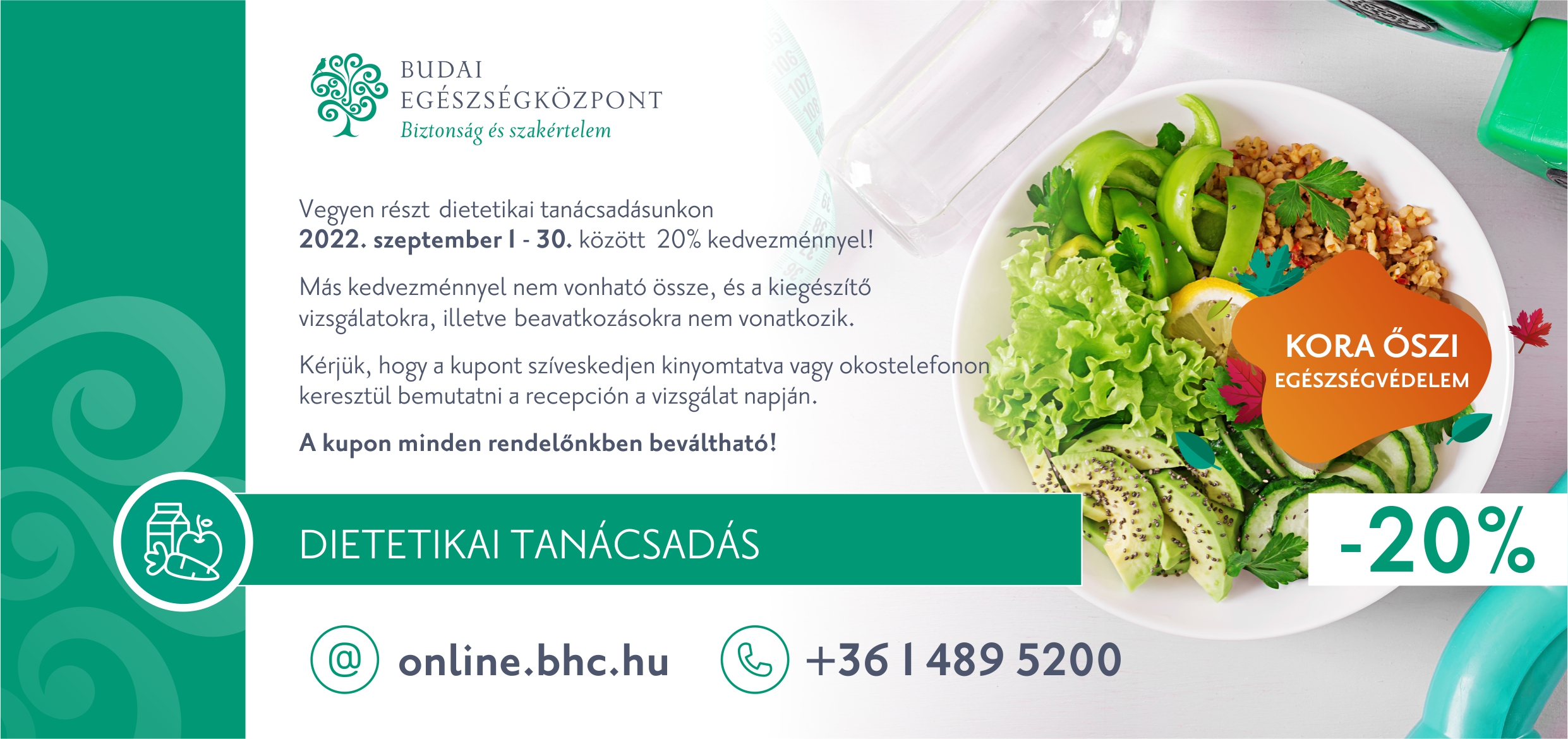 - Dietetikai tanácsadás 18 000 Ft helyett 14 400 Ft