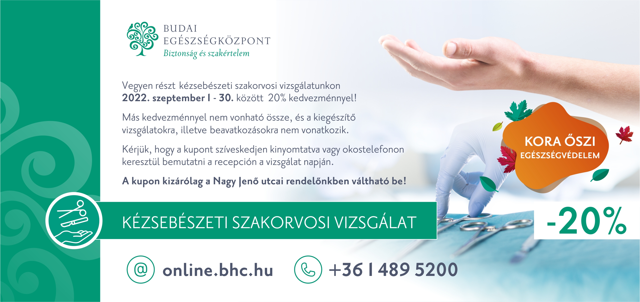 - Kézsebészeti szakorvosi vizsgálat 29 000 Ft helyett 23 200 Ft