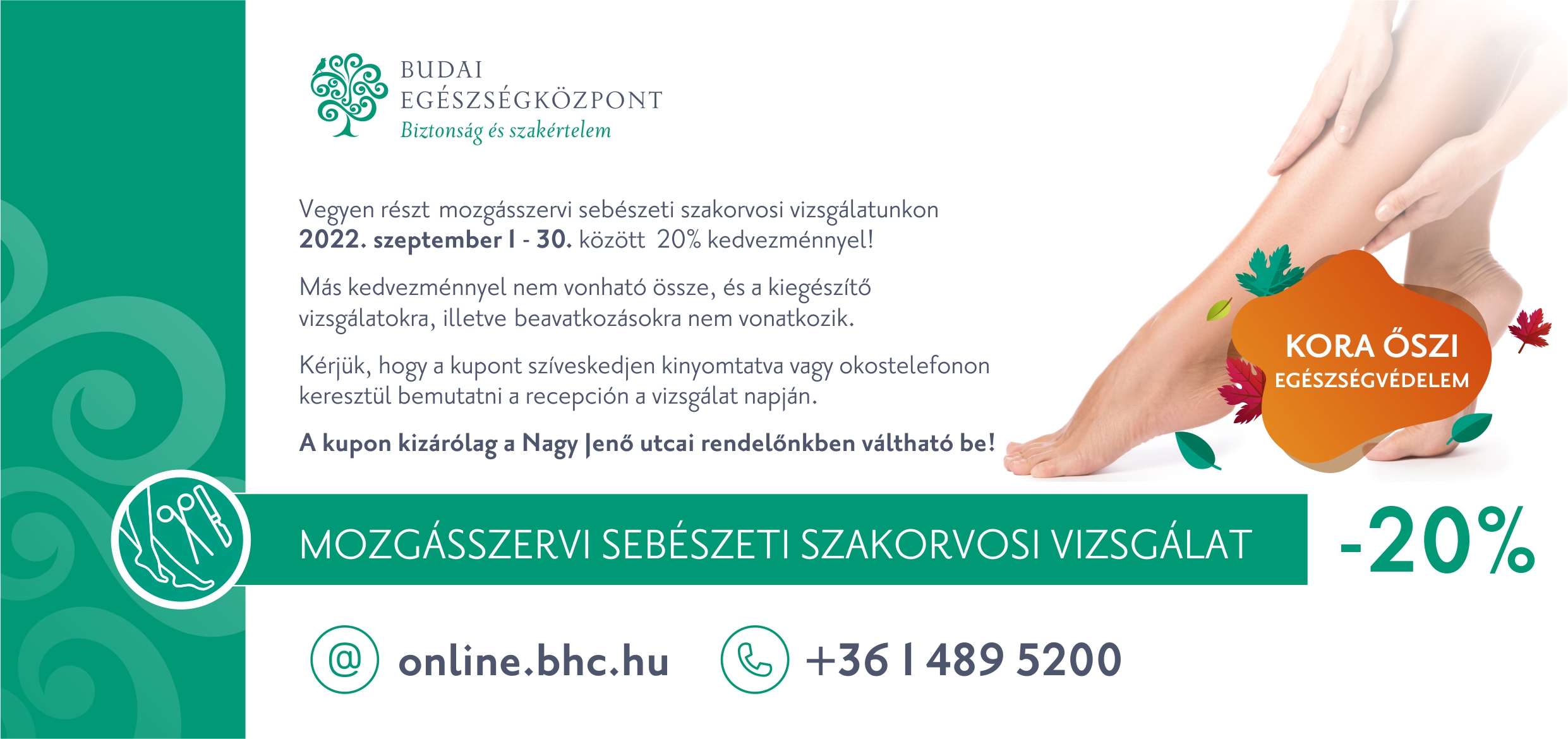 - Mozgásszervi sebészeti szakorvosi vizsgálat 32 000 Ft helyett 25 600 Ft